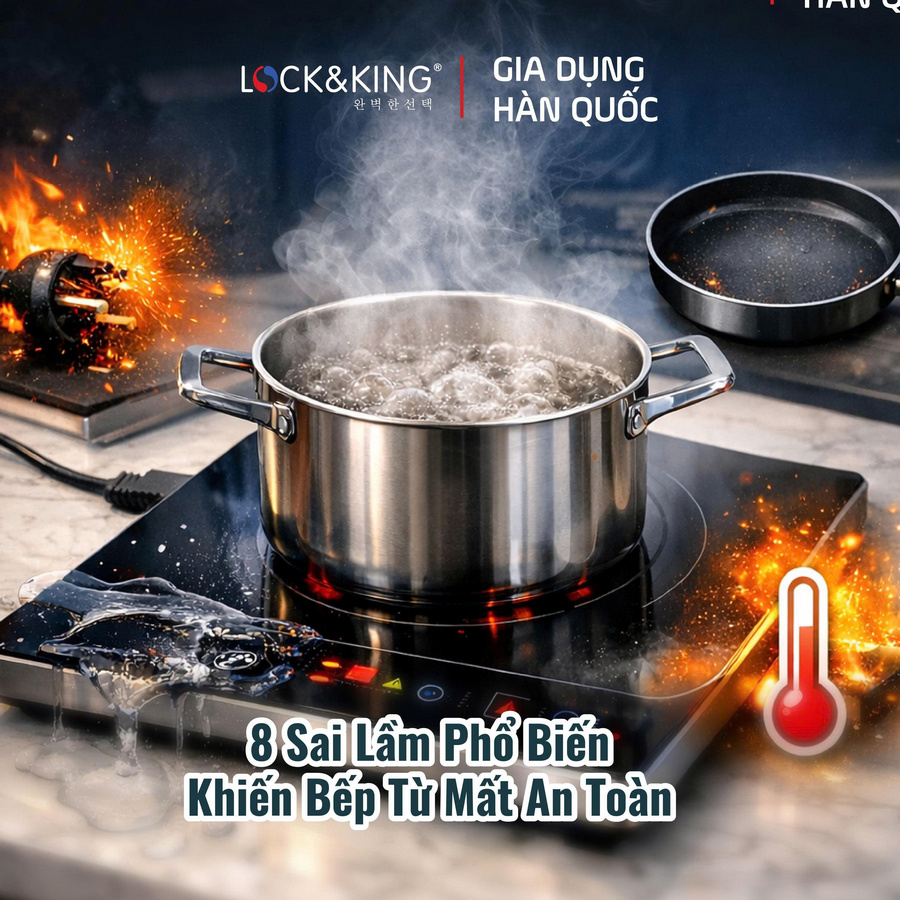 Trong quá trình tư vấn và ghi nhận phản hồi từ người dùng, tôi nhận thấy phần lớn sự cố liên quan đến bếp từ không xuất phát từ lỗi kỹ thuật mà đến từ những thói quen sử dụng sai cách. Những sai lầm nhỏ nhưng lặp lại thường xuyên có thể làm giảm tuổi thọ thiết bị và tiềm ẩn rủi ro về điện. Dưới đây là 8 lỗi phổ biến bạn cần tránh để đảm bảo an toàn khi sử dụng bếp từ:
