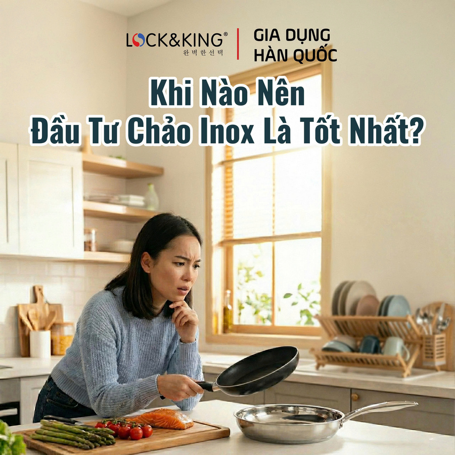 Sở hữu ngay chảo inox chống dính tự nhiên Lock&King 316 – thiết kế chuẩn Nhật, tay cầm cách nhiệt, nấu ngon mà không lo dính. Ghé LocknKing.vn để nhận quà tặng miếng lót nồi!