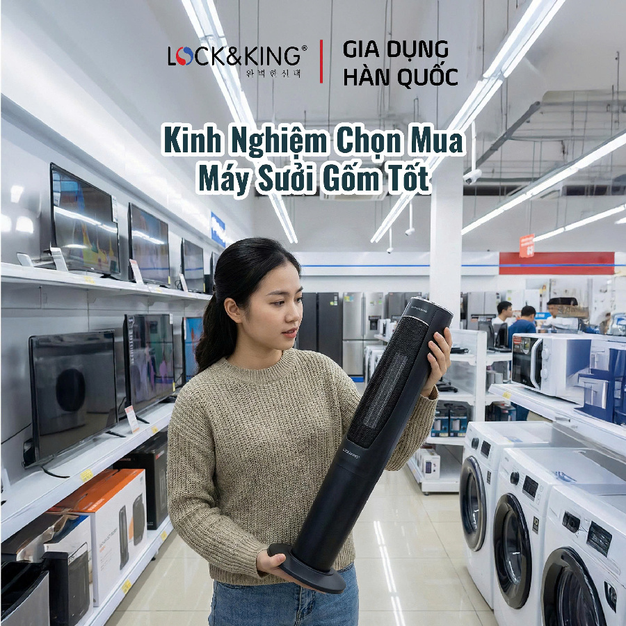 Khi đã hiểu rõ máy sưởi gốm là gì và những lợi ích mà dòng thiết bị này mang lại trong mùa lạnh, việc lựa chọn một thương hiệu uy tín sẽ quyết định trực tiếp đến trải nghiệm sử dụng lâu dài. Trong số các sản phẩm trên thị trường hiện nay, máy sưởi gốm Lock&King nổi bật như một giải pháp sưởi ấm hiện đại, đáp ứng tốt các tiêu chí về hiệu quả, an toàn và tính tiện dụng cho gia đình Việt.