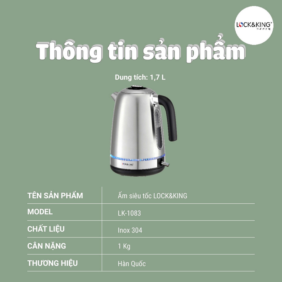 Thông tin về sản phẩm Ấm Siêu Tốc Lock&King LK-1083