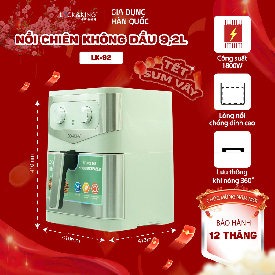 Nồi Chiên Không Dầu Lock&King LK-92 – Giải pháp nấu ăn hiện đại, tiện lợi và tốt cho sức khỏe