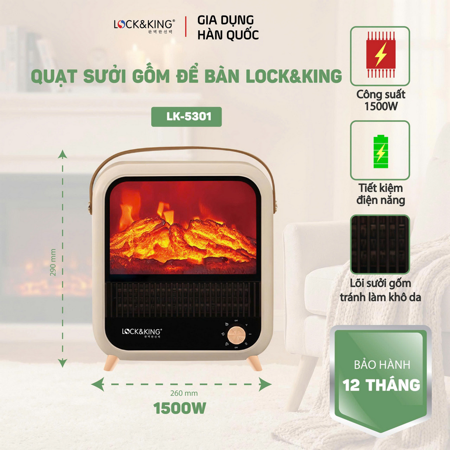 Quạt sưởi để bàn Lock&King LK-5301 an toàn