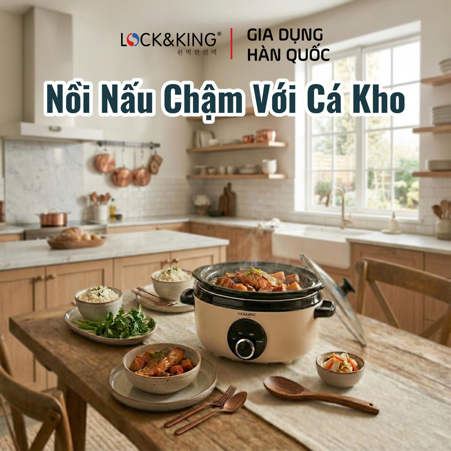 Là món ăn dân dã, quen thuộc trong bữa cơm gia đình Việt, với hương vị mặn mà, đậm đà và thơm nồng của tiêu, ớt, nước màu. Khi sử dụng nồi nấu chậm Lock&King, món cá kho trở nên dễ làm hơn rất nhiều mà vẫn giữ được độ ngon truyền thống: thịt cá săn chắc nhưng không bị nát, phần nước kho sánh, đậm vị và dậy hương thơm đặc trưng. Đây là món cực kỳ phù hợp cho những ai thích cá kho mềm nhừ, thấm vị mà không muốn đứng bếp lâu.