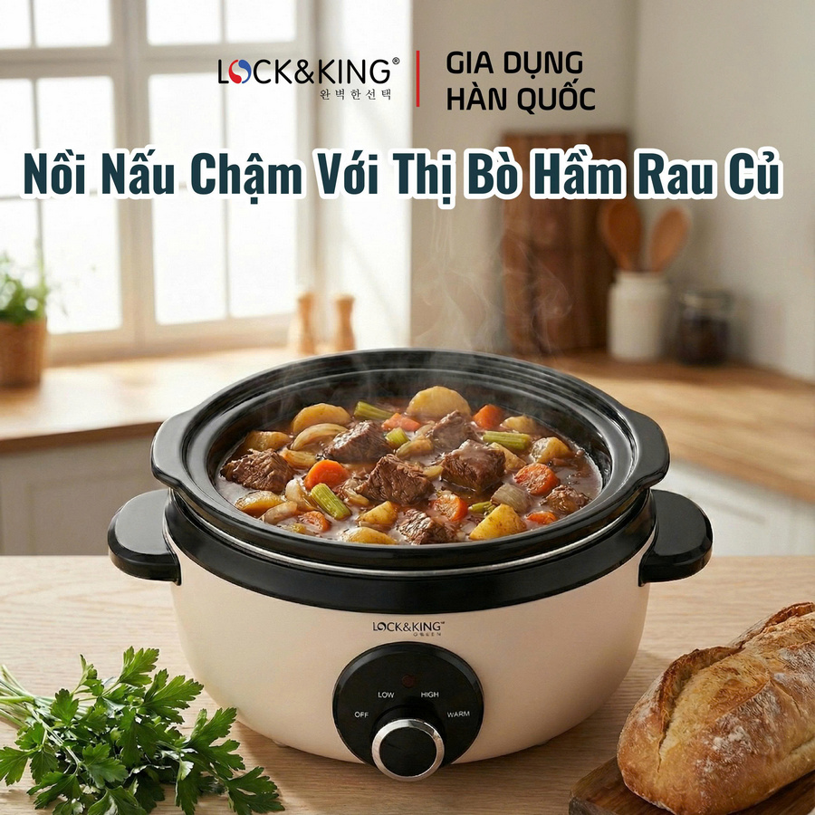 Là món ăn quen thuộc trong nhiều gia đình, vừa bổ dưỡng vừa làm nền cho nhiều món khác như phở, bún, canh hoặc súp. Khi sử dụng nồi nấu chậm Lock&King, việc hầm xương trở nên nhẹ nhàng hơn hẳn so với cách nấu truyền thống. Nhờ duy trì mức nhiệt thấp và ổn định trong thời gian dài, nồi giúp xương tiết hết vị ngọt tự nhiên, tạo nên phần nước dùng trong, thanh và giàu dưỡng chất mà không cần phải vớt bọt nhiều lần hay canh chừng bên bếp.